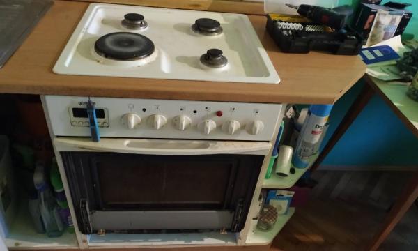 Pri gospodu Bojanu smo menjali staro pečico v kombinaciji s plinsko kuhalno ploščo Gorenje za nov kuhinjski set Candy. Gospod ni želel imeti več kuhališča na plin in pri pečici je zaradi okvare tečaja na vratih počilo steklo. Gospod Bojan se je odločil za nakup novega kuhinjskega set s steklokeramično ploščo. Tudi tokrat ni šlo brez rezanja in prilagajanja.