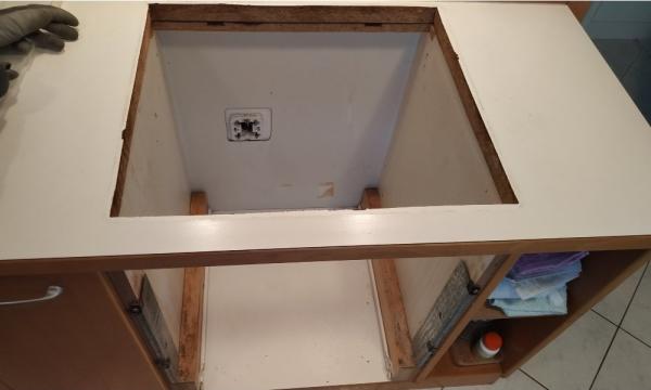 - Opis reference Primožu smo zamenjali staro kuhalno ploščo in pečico Gorenje za nov kuhinjski set AEG. Odstranili smo pečico, odklopili električni kabel, nato pa odstranili staro kuhalno ploščo. Ker ima stranka že predpripravljen trofazni priklop, smo kuhalno ploščo priklopili na dve fazi, pečico pa na preostalo fazo. Brez težav seveda ni šlo. Električna priključnica je nameščena na mestu za pečico, tako,da pečice nismo mogli pravilno namestiti, ker jo je ovirala priključnica. Odstranili smo priključnico, ter kuhalno ploščo in pečico priklopili z električnimi sponkami. Sedaj je bilo dovolj prostora, da smo pečico lahko vstavili do konca in se je lepo prilegala kuhinjskemu elementu. Pečico smo pritrdili z vijaki, preverili delovanje obeh aparatov in zaključili s montažo in priklopom. Čas menjave ca. 1,5 ure.