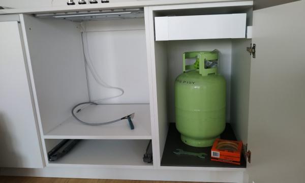 - Opis reference Gospod Matej nas je poklical zaradi priklopa kombinirane kuhalne plošče Bosch na plinsko jeklenko. Ker gre za novogradnjo in kuhinjo narejeno po meri, smo prvo preverili možnost priklopa na električno omrežje. Ploščo smo brez težav priklopili na že puščen trofazni električni vodnik. Sledil je še priklop plina iz jeklenke na kuhalno ploščo. Na plinsko cev smo namestili regulator plina, ki skrbi za konstanten pritisk plina in priključek, kateri se namesti na samo kuhalno ploščo. Cev smo privijačili na jeklenko in kuhalno ploščo. Preverili smo tesnenje cevi oz.priključkov in vse skupaj tudi preizkusili ter zaključili z montažo. Čas montaže ca. 1.5 ure.