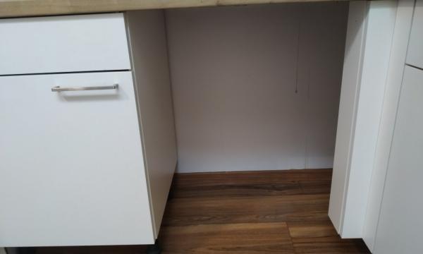 - Opis reference Tokrat stranka v kuhinji še ni imela pomivalnega stroja. Gospa Nataša nam je predhodno poslala slike, da smo ocenili ali ima vso potrebno predinštalacijo. In ker so že pri sami zasnovi kuhinje predvidevali, da bodo imeli pomivalni stroj, je bila inštalacija že prepripravljena. Odstranili smo kuhinjski element in namesto njega namestili vgradni pomivalni stroj Vox. Stroj smo dvignili na željeno višino, potegnili vso napeljavo do elementa z vodovodno in električno inštalacijo, ter vse skupaj priklopili. Nato smo se posvetili montaži kuhinjske fronte na stroj. Ker je bila fronta oz. kar vrata del kuhinjskega elementa, smo odstranili tečaje vrat in poglobili vijake ročaja. Za vijake je priporočljivo, da so poglobljeni zaradi samega stika med fronto in strojem. V nasprotnem je zaradi njih lahko fronta nekoliko ukrivljena ali pa vijaki drsajo po stroju. Predvsem je to potrebno izvesti na strojih z drsnim odpiranjem vrat. Fronto smo namestili na pomivalni stroj, ter vse skupaj naravnali in stroj fiksirali z vijaki. Pomivalni stroj smo še preizkusili, preverili ali ni puščanja vode in zaključili z montažo. Čas montaže ca 1.5 ure,