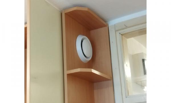 - Opis reference Petra v kuhinji ni imela nape. V kuhinji prav tako nima možnosti odvoda zraka v jašek. Po predhodnem ogledu smo se odločili, da ji v element nad kuhalno ploščo vgradimo vgradno napo Bosch. Element je bilo potrebno prilagoditi za vgradnjo nape prav tako narediti vse izreze za odvodno cev. Glede na to, da so kuhinjski elementi visoki in segajo do samega stropa je bila edina rešitev, da naredimo odvod zraka iz elementa ob strani. Rešitev se je izkazala za uspešno, prav tako estetsko in funkcionalno. V samem elementu je še vedno dovolj prostora za shranjevanje prav tako pa je zagotovljeno tudi pravilno kroženje zraka.